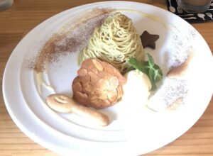 モンブランは注文を受けてから絞っている(ウニュウニュしてるやつね)そうですよ。食べてみると、とても濃厚で栗の味がしっかり感じられ、おいしかったです。パフェが有名みたいで、メニューにはシャインマスカットのパフェがあったんですが、お値段が意外と高、、、。っと今回は心の事前準備をしていなかったので、次行くときは、心とお財布の準備をしっかりして、、パフェに挑戦したいですね!