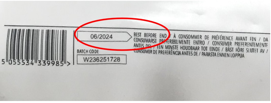 今回の場合、 06/2024 BEST BEFORE END ということで 2024年6月 までの賞味期限となっていました。購入したのは 2023年3月 なので1年3カ月程ですね。工場の在庫状況によってもかわってきますが、1年以上は賞味期限があります。