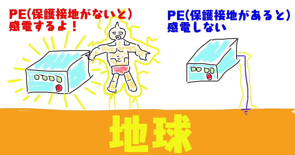 PEとは protective earth 、protective earthing の略で日本語でいうと 保護接地 という意味になります。
