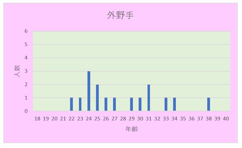 中日ドラゴンズ ポジション毎の年齢分布(2024年)