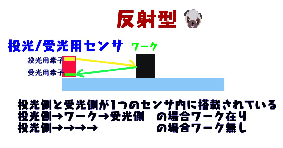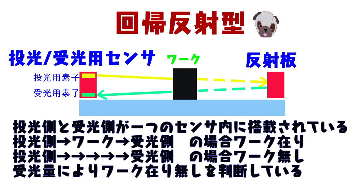 投光素子→ワーク→反射板→ワーク→受光素子 というように光がワークを2回通ることで受光量に違いが出やすくなり、ワーク有無の判別精度が高くなります。