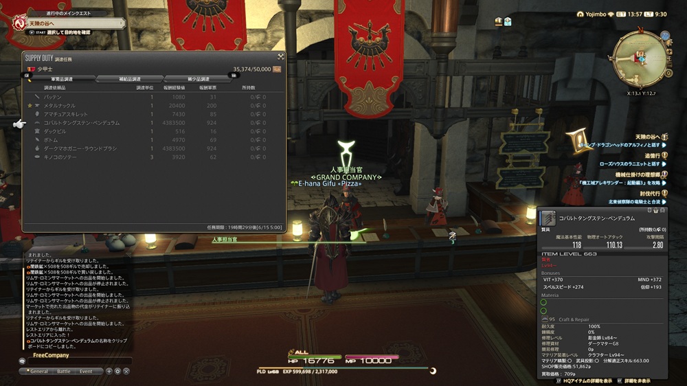 ・グランドカンパニーに所属した後は、1日1回所属するグランドカンパニーに納品することでかなり多くの経験値がもらえるのでおすすめ!