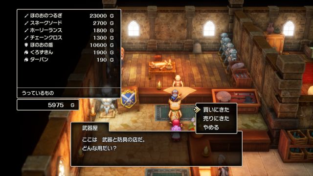 武器屋が3箇所あり、それぞれ違うものが売ってます。 ほのおのつるぎ ほのおの盾 欲しい🤤🤤 他にはカギがかかっていて箇所もあるので後日またお邪魔することにします。効率よく行きたいかたは、素直にマップにでてくる印の箇所に向かいましょう🤣🤣