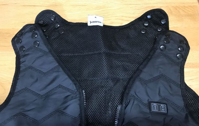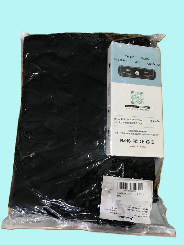 電熱ベスト本体です。購入時は電熱ベスト本体+バッテリーがセットになっているもの、および電熱ベストのみでバッテリーは別売り のものがあるので注意しましょう😫😫