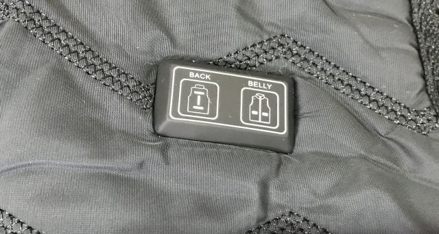 肩部、お腹部にサイズ調整ができるようになっていて、お腹部、背中部で別々に温度調整ができるようになっています。